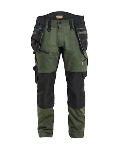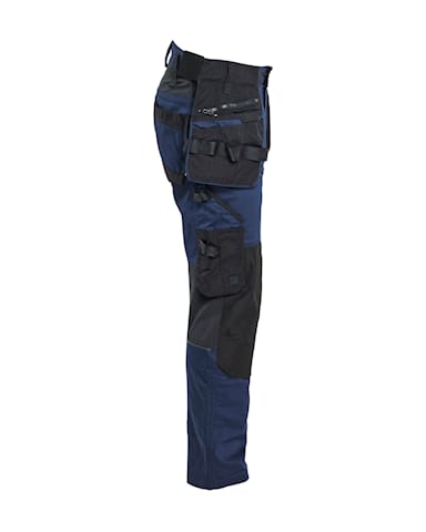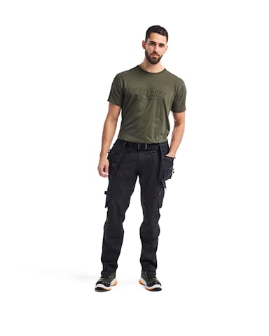 The trousers have a high waist at the rear, detachable tool pockets and tapered legs. Knee and yoke ventilation for increased comfort. Heavy-duty knee pad pockets in CORDURA® Stretch Dobby.